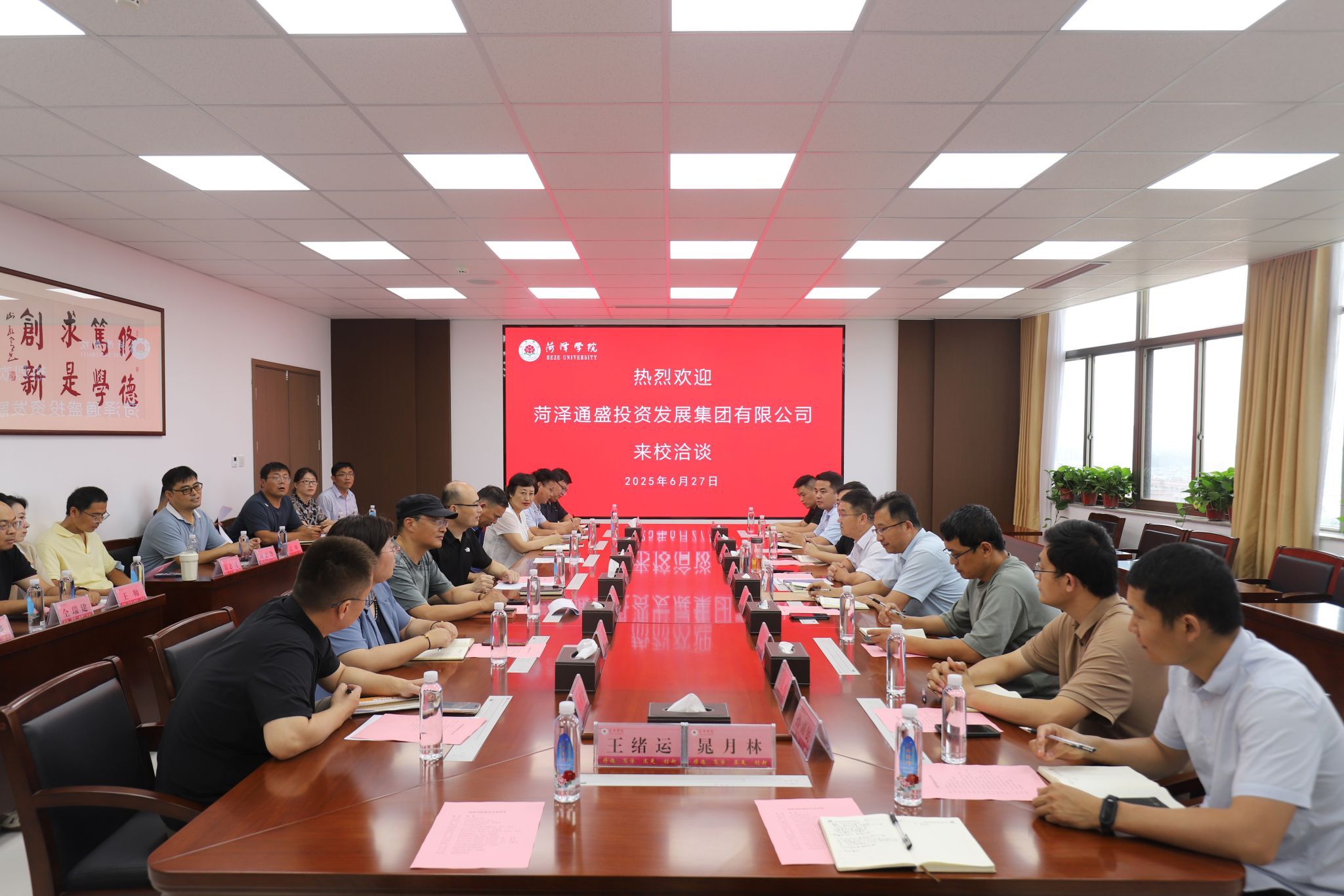 6月27日下午,菏泽通盛集团党委委员、副总经理兼山东通盛数据科技有限公司董事长季保卫一行10人来我校考察交流。合作发展处处长王庆林参加活动并主持座谈会。